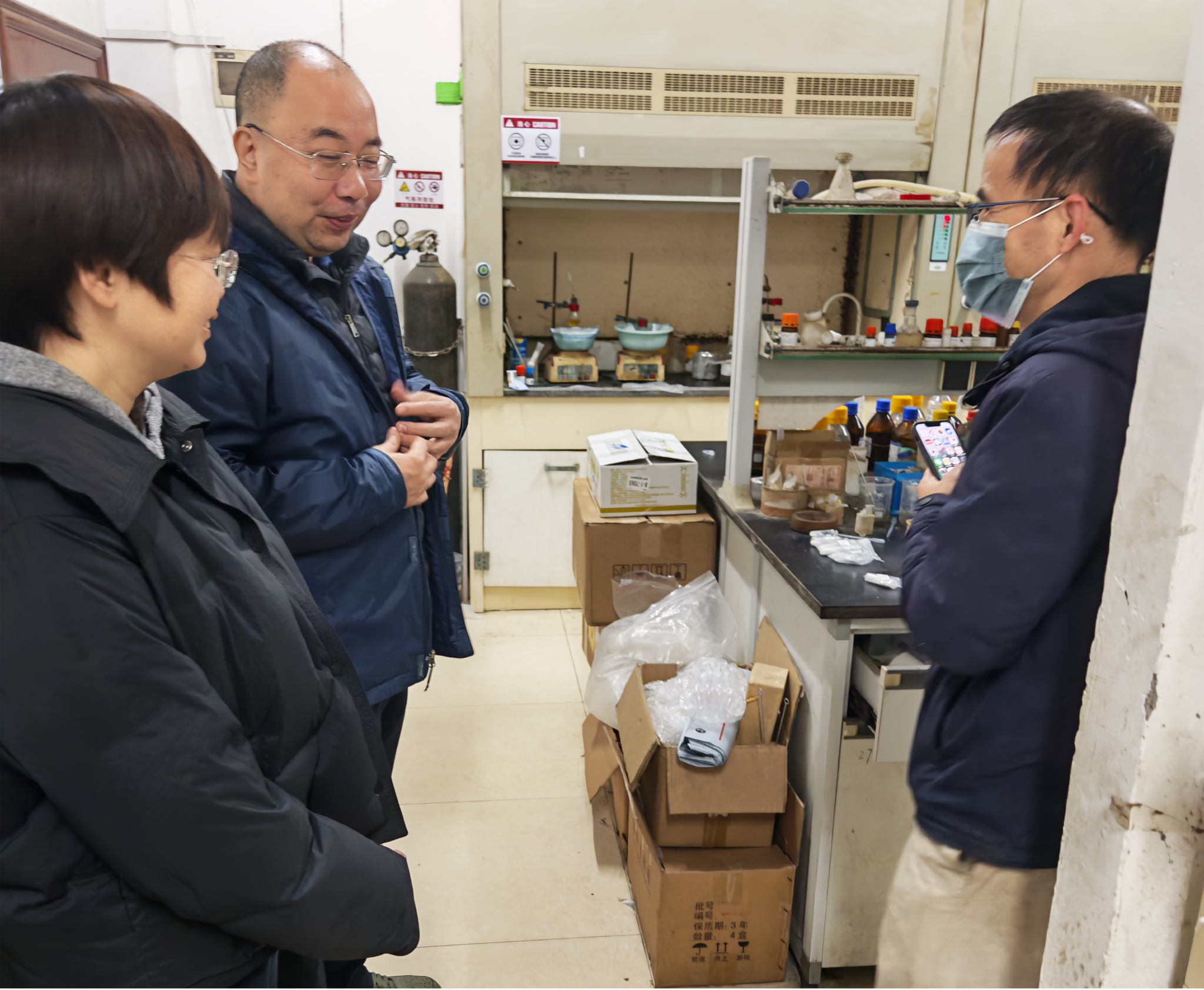 为进一步加强实验室安全管理,消除各类隐患,保障师生人身安全和寒假期间校园稳定,1月16日上午,化学化工学院进行寒假前实验室安全检查,副院长宋春红带领教学实验中心常务副主任胡瑞祥、副主任徐琼等老师一起检查。