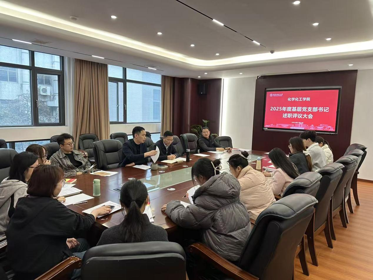为深入贯彻新时代党的建设总要求,持续推进党支部标准化规范化建设,增强基层党组织政治功能和组织功能,化学化工学院党委于2026年4月2日召开2025年度基层党建工作述职评议会。学院党委书记、副书记及各党支部书记参会,党委副书记周子虬主持会议。