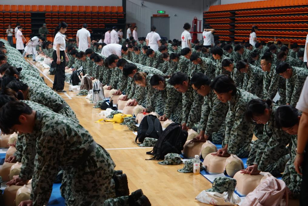 (通讯员 程杰梅 王姿晴)由湖南师范大学医院主办、长沙市红十字会协助指导的急救知识与技能培训,10月12日上午在江湾体育馆举行,化工院军训团参加培训。