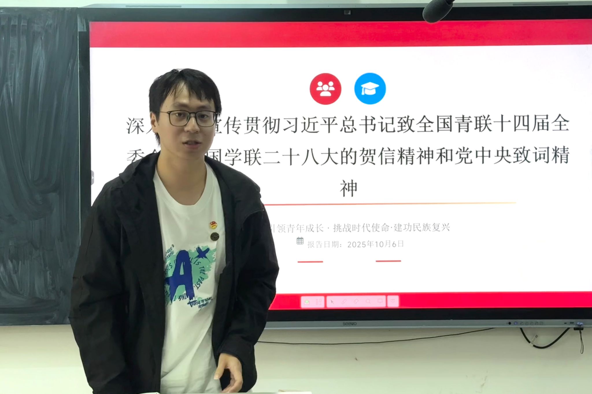 会议伊始,欧阳轩杭转述了习近平总书记贺信的主要内容,也传达了党中央致词的精神要点,表示要深刻领会习近平总书记一系列的精神指示,推动新时代党的青年工作取得新的更大成绩。欧阳轩杭与学生会成员们进行了深刻讨论,大家一致认为要将贺信精神和党中央致词精神转化为实际行动,发挥好学生会的纽带作用。同时,欧阳轩杭就过去五年中华全国青年联合会工作成效以及青联未来五年工作部署展开演讲,与学生会成员探讨了学生会的发展方向。