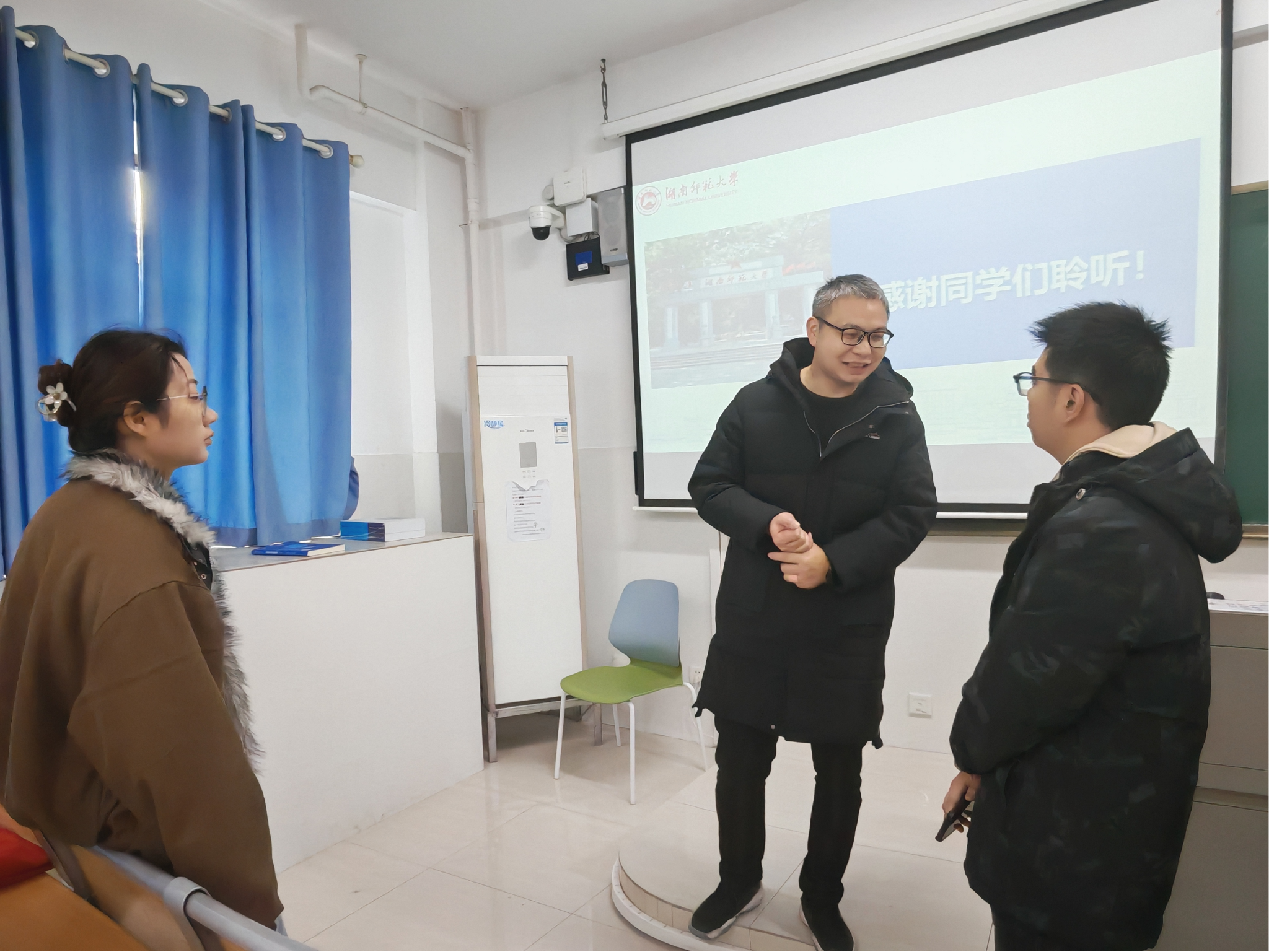 (通讯员 张艾平)12月13日上午,我院学生会办公室在中和楼211教室组织开展第358期快乐周末谈活动。此次活动由我院化学系苏乐斌教授主讲,部分23级、24级、25级学生参与。