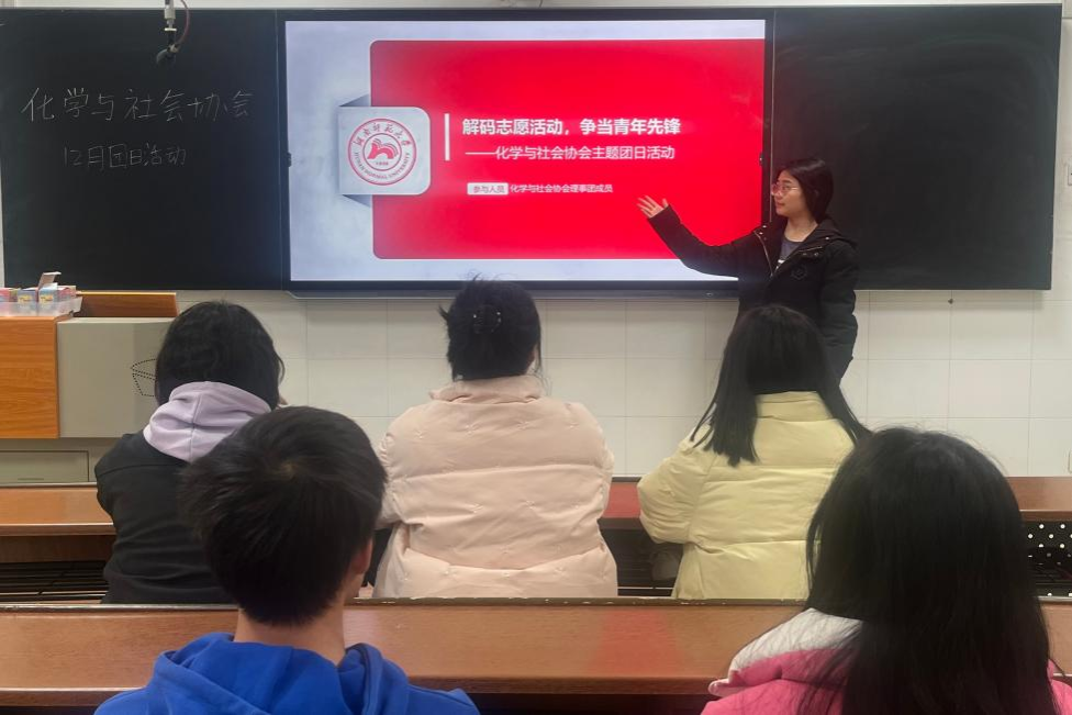 (通讯员 伍斯宇)12月12日下午,我院化学与社会协会在至善楼104教室开展“解码志愿内涵,争当青春先锋”主题团日活动,化协理事团全体成员共学志愿精神、共话青春担当。