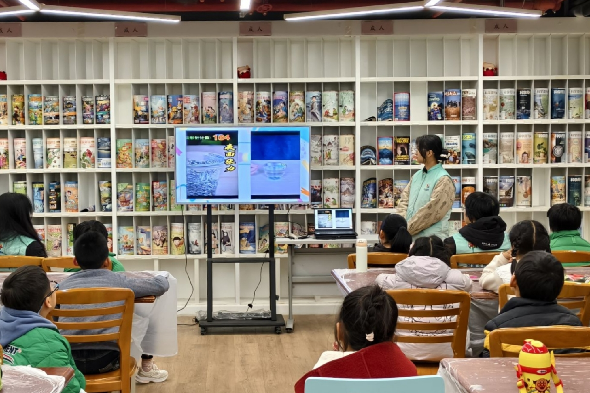 志愿者和小朋友观察实验现象
