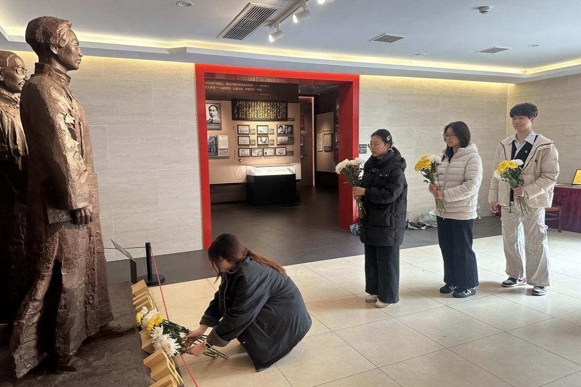 谭进杰介绍活动背景与意义,强调清明时节开展红色教育,是对革命历史的铭记、对先烈精神的传承。全体党员在革命烈士雕像前肃立默哀,依次敬献菊花,认真了解先烈们的英勇事迹,在回望历史中感悟初心使命,在精神洗礼中坚定理想信念。