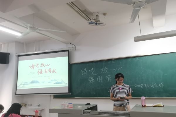 (通讯员 朱文琪)9月17日上午11时,化学化工学院2008班全体成员在化工院117教室举办“请党放心,强国有我”团日主题活动。此次活动由团支书朱文琪主持。