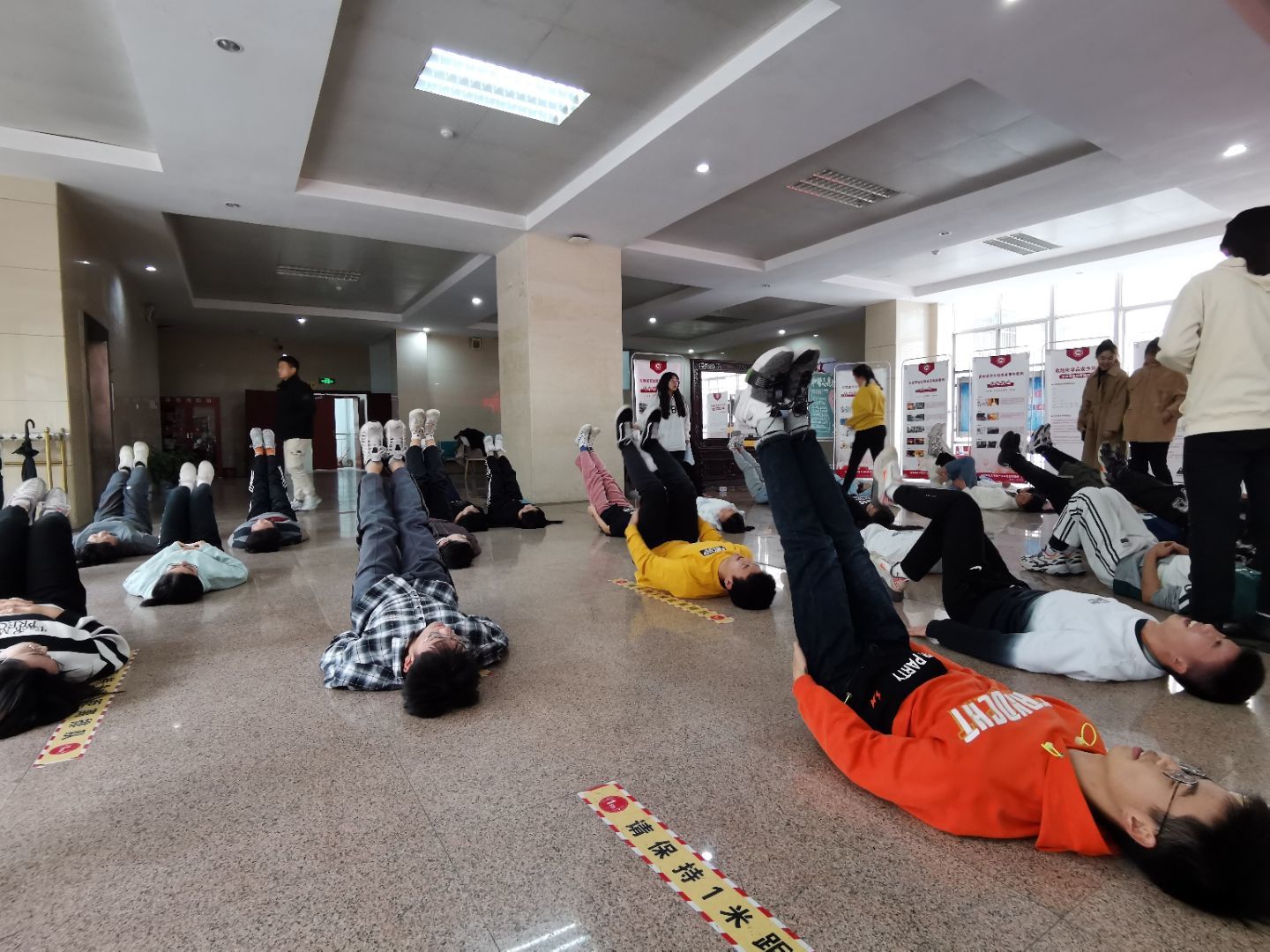 招新活动开始前,在健康服务部负责人于雅淇的口号下,所有报名人员进行有序的热身活动。通过平板支撑、高抬腿、原地跳以及仰卧起坐和俯卧撑等动作考验报名人员的体能。除此之外,参评人员也安排了健美操的一些动作让报名人员学习并进行评分。选拔结束后,参评人员对报名人员进行了筛选,筛选结束后所有人员有序离场。