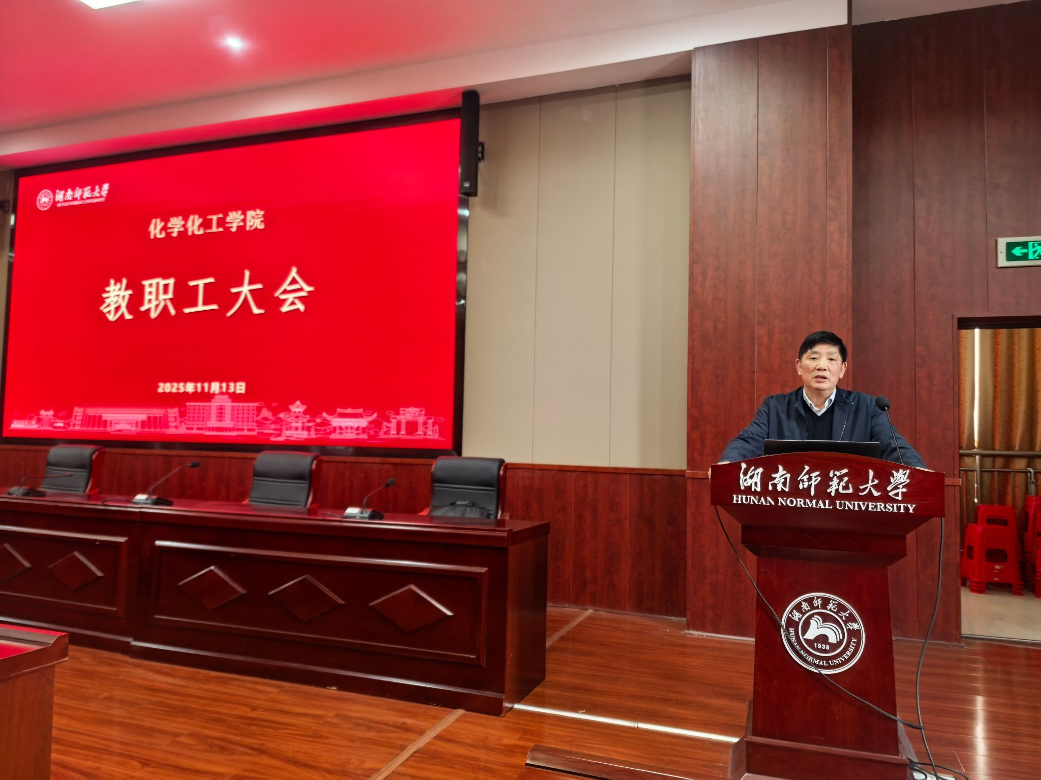 11月13日下午,化学化工学院在达嘉维康报告厅召开全体教职工大会,学院领导班子成员及全体教职工参会。会议由学院党委副书记周子虬主持。