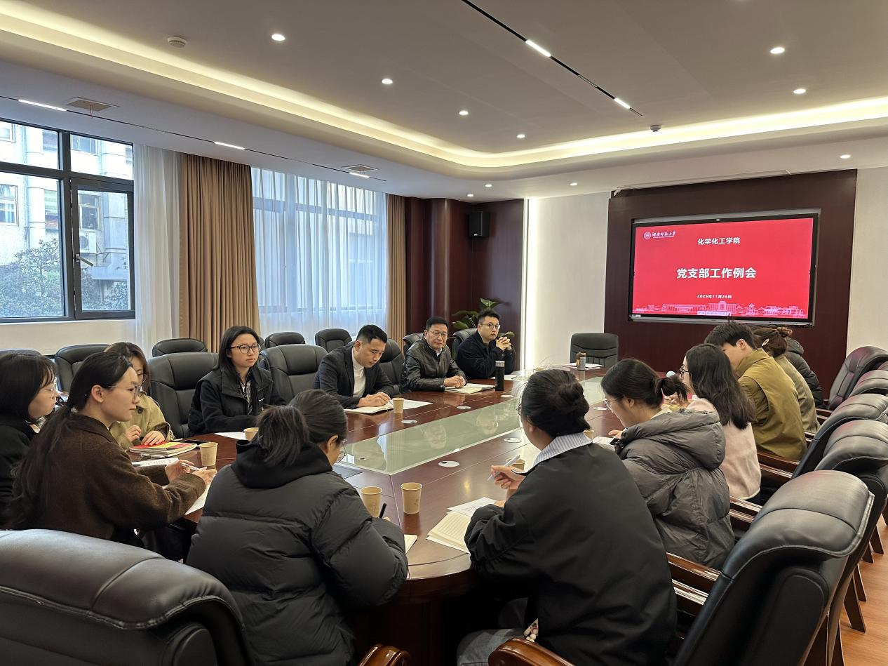 2025年11月26日上午,化学化工学院党支部工作例会在化学楼206会议室召开。学院党委书记、副书记、党委委员及各党支部书记参加会议。会议由学院党委副书记周子虬主持。
