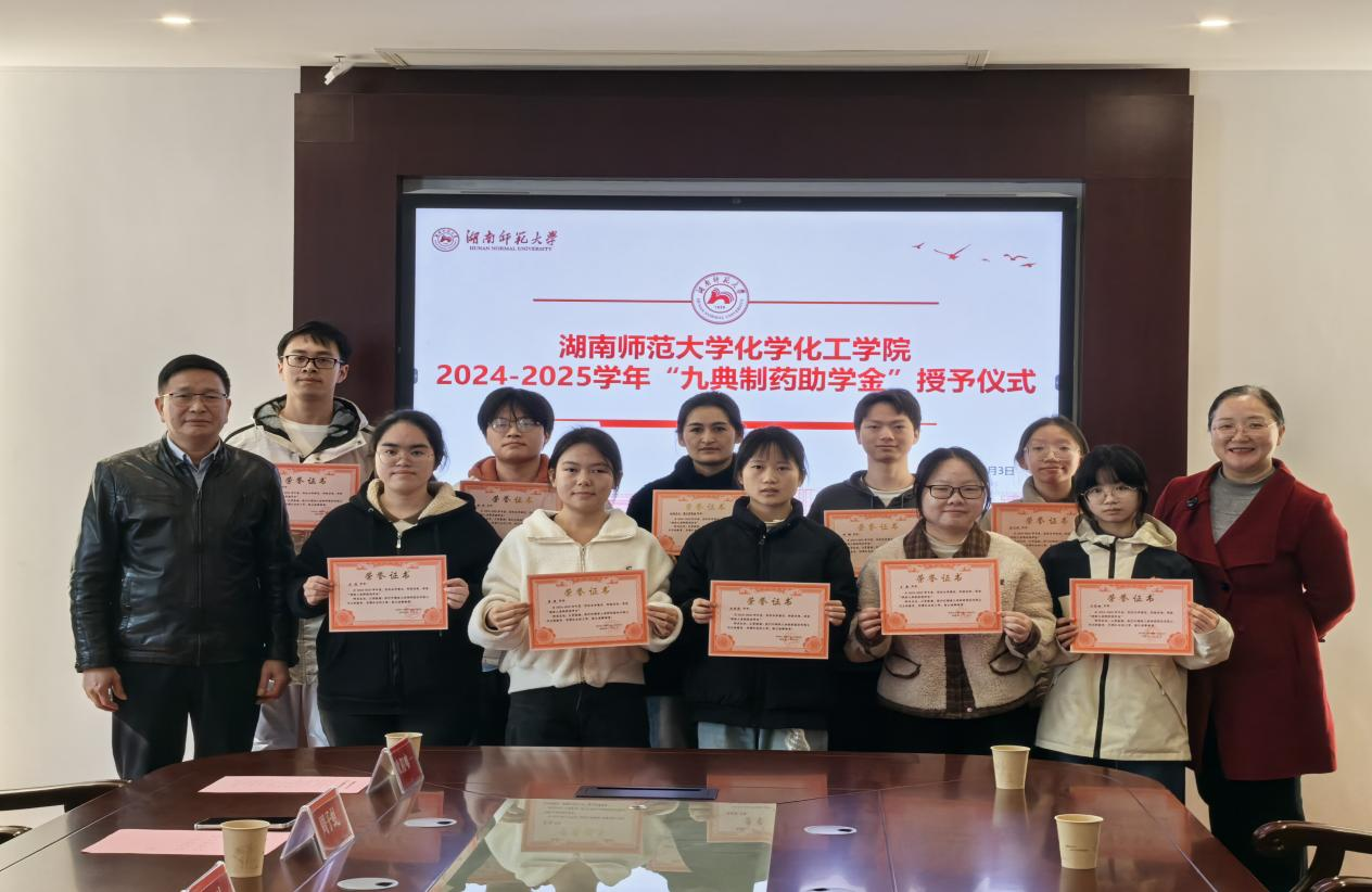 (通讯员 谭伟维)12月3日上午,我院在化学楼206会议室隆重举行2024-2025学年度“九典制药助学金”授予仪式。仪式由副院长宋春红主持。九典制药人力资源总监杨洁、人才发展主管张叶,院党委书记谭东波、副书记周子虬、学工办主任欧阳唯一、资助专干朱伟鹏出席仪式,全体获助学生参加。