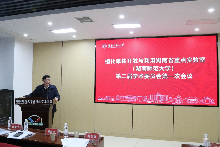 2025年12月17日,“植化单体开发与利用”湖南省重点实验室第三届学术委员会第一次会议在我校化学化工学院举行。学术委员会主任、北京大学叶敏教授,以及湖南农业大学曾建国教授、湖南中医药大学王炜教授、武汉大学周强辉教授和李武教授、浙江大学王建博教授、湖南大学岳磊教授、湖南师范大学陈波教授和马元鸿教授等委员出席会议。学校科技处处长唐东升代表学校参会。