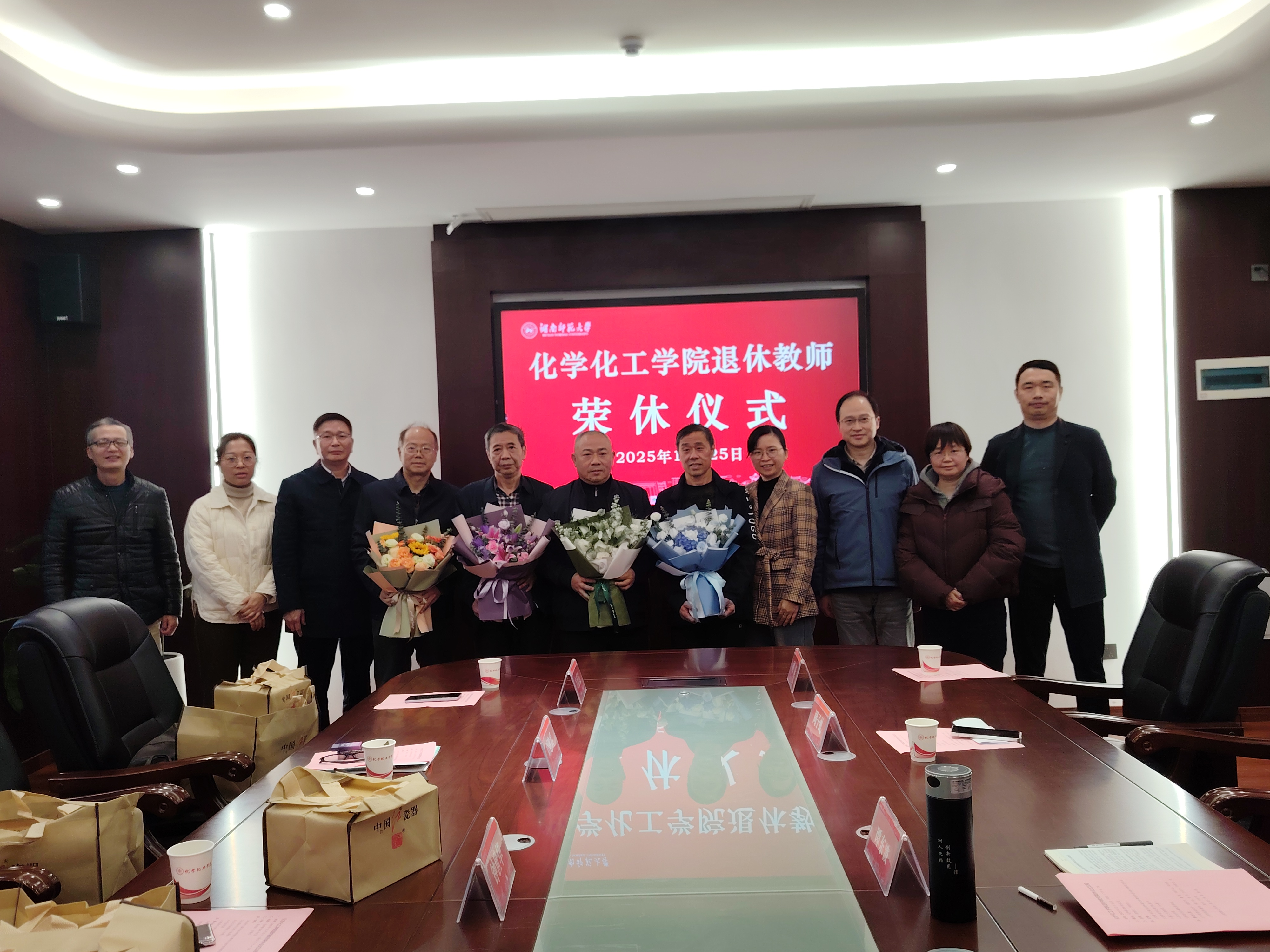 12月25日下午,化学化工学院举行了荣休仪式,为感谢2024年和2025年退休的郝力生、李兰、方正法、李添宝、刘建兵、钟世华六位老师多年来对学院的辛勤付出和贡献,党委书记谭东波,副书记周子虬,副院长谭亮、宋春红出席仪式,教师代表周旺、陈超、杨蓉参加仪式,仪式由副院长宋春红主持。
