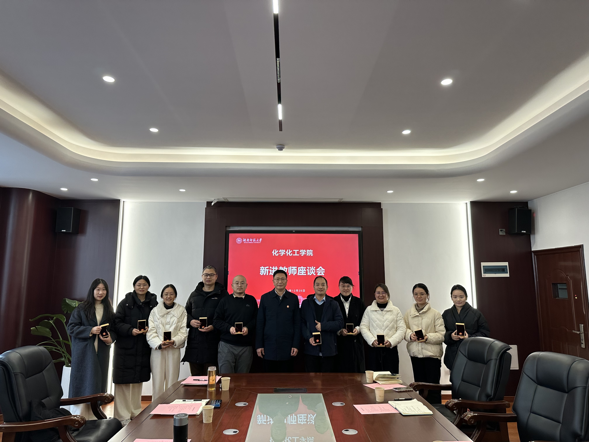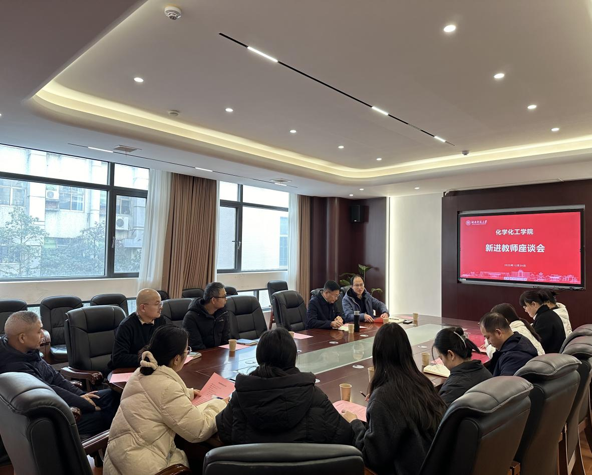 2025年12月25日,化学化工学院召开新进教师座谈会。院长杨荣华、书记谭东波、副院长宋春红,以及资深教师代表梁云、杨亚辉教授等出席会议。会议由副院长谭亮主持。